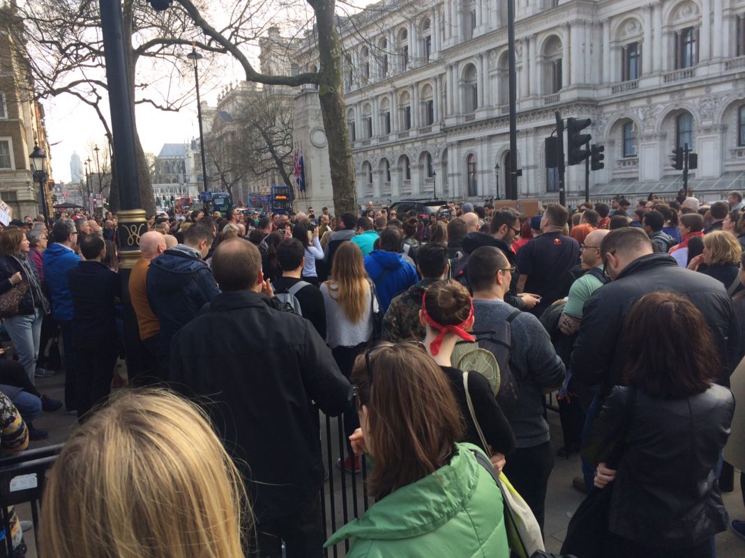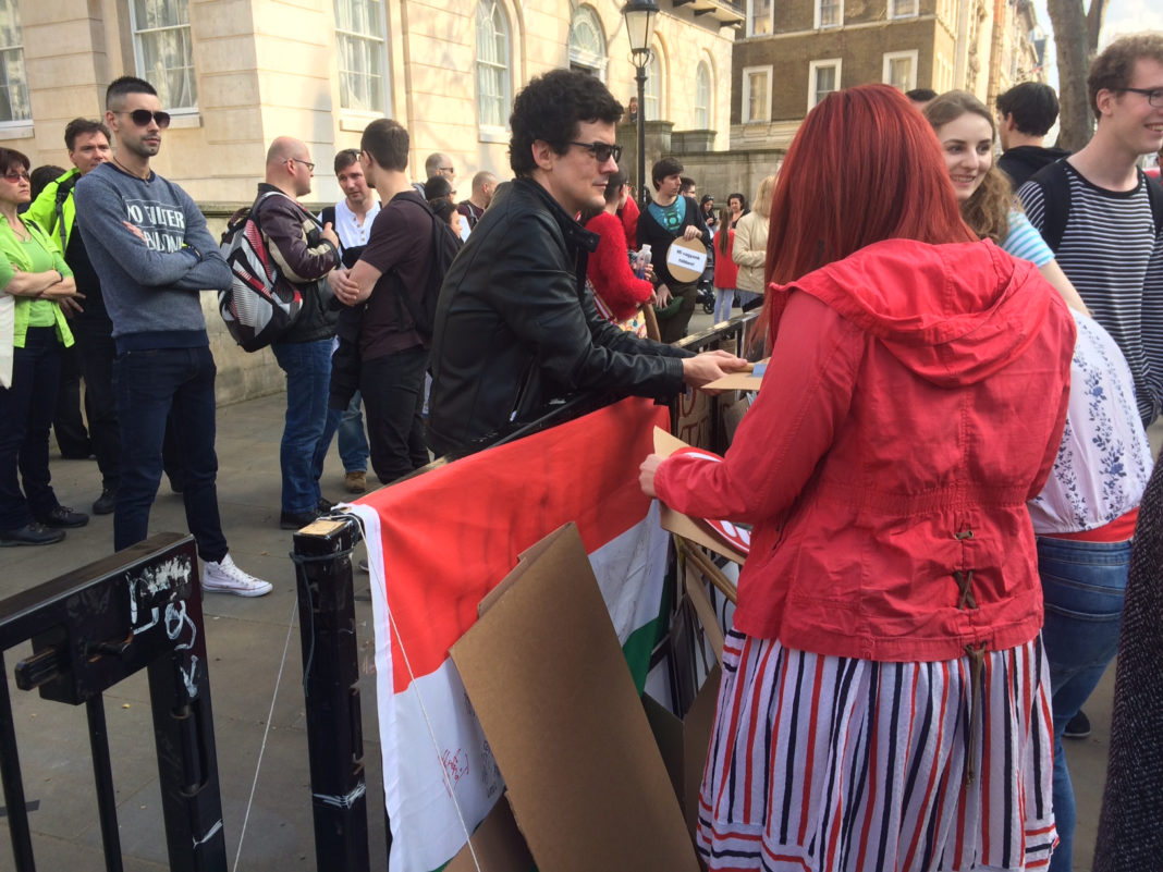 Londonban, a Westminster közelében is tüntetnek a magyarok. Négyszázan gyűltek össze, a hangulat baráti. Mint beszámoltunk róla, közel tízezren szavaztak vasárnap a londoni külképviseleten.